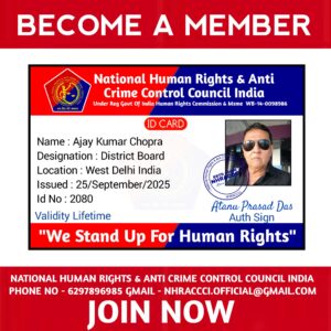The National Human Rights & Anti Crime Control Council India (NHRACCCI) is a dedicated non-profit organization committed to upholding the dignity, equality, and justice for all individuals across India. Founded on the principles of universal human rights as enshrined in the Universal Declaration of Human Rights and the Indian Constitution, NHRACCCI works tirelessly to combat systemic injustices, prevent crimes, and foster a safer, more equitable society.